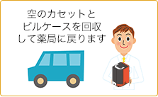 薬局が薬を持ってご自宅へ訪問、ロボの中へ薬をセットします。