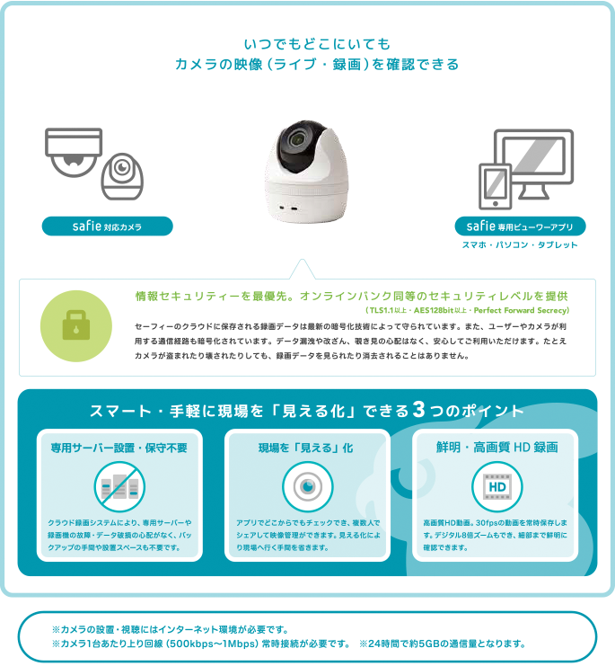 カメラは簡単設定、高セキュリティで利用が可能です。