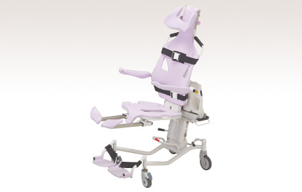 また、座面が電動でチルトできますから、前傾姿勢になる方や座位保持がとれない方もご使用できます。窮屈感がなく、リラックスして入浴できます。