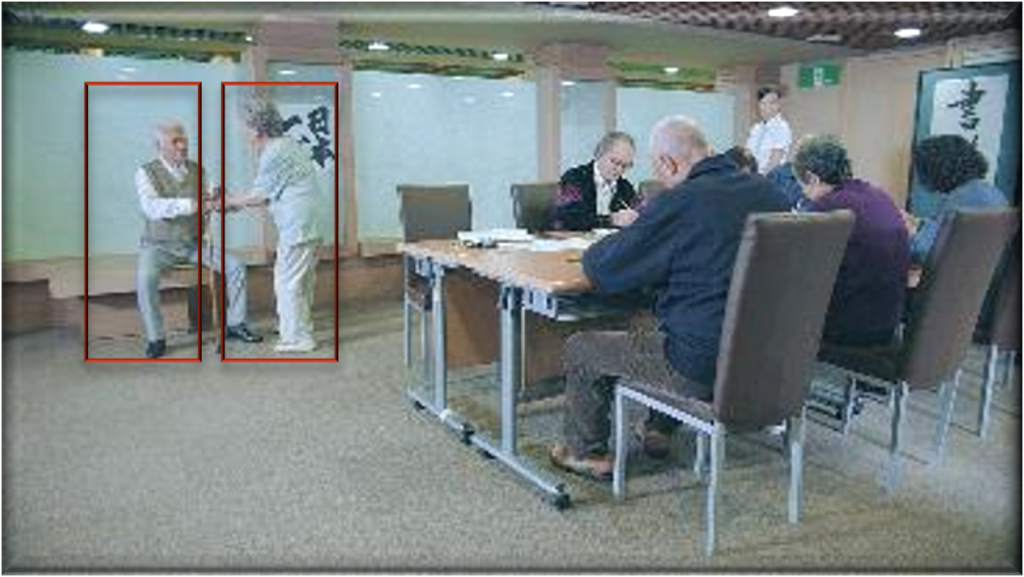 顔認証、姿勢検知を行い危険をお知らせ。後ろ姿でも判別します! エレベーターの階数も認識します。