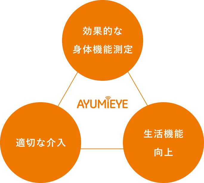 AYUMI EYEは、利用者さんの「歩きたい」というモチベーションを引き出し、運動習慣を身につけることを実現すると共に、スタッフの負担も大幅に削減させます。