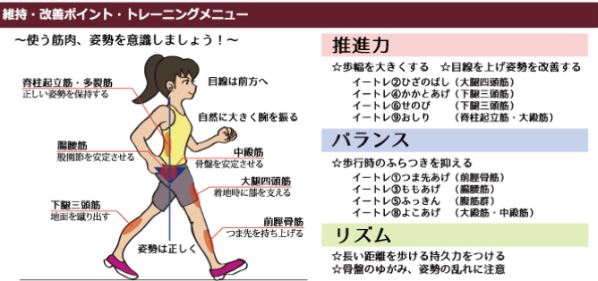 歩行の質を知り適切な運動をすることで、転倒予防・健康寿命の延伸に。