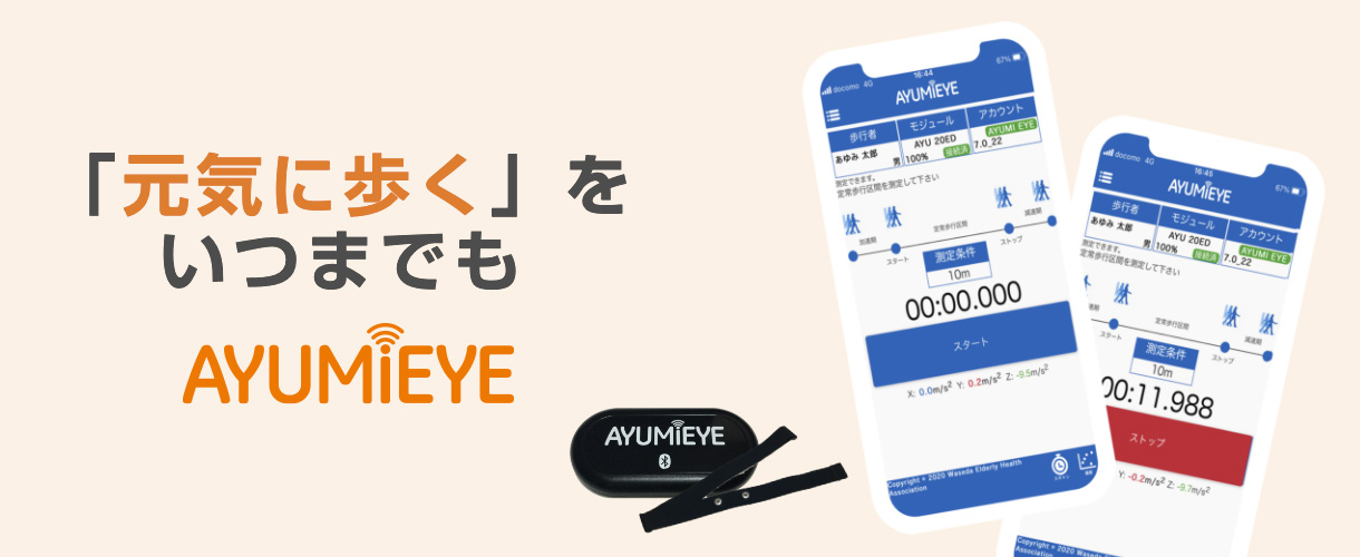 iPad(iPhone)専用アプリで簡単操作、測定に際し歩くだけなので、安全に実施可能。
