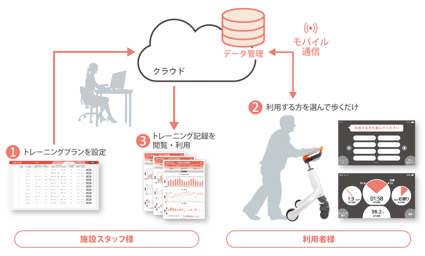 特徴2:使うたびに歩行のデータをクラウドに自動記録